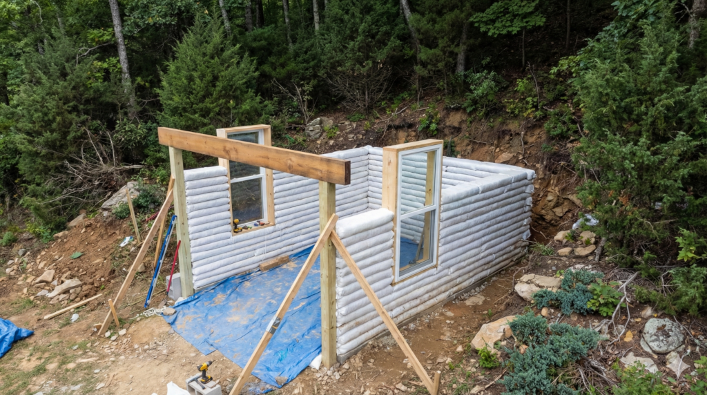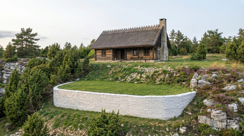 - Erakordne vastupidavus: Earthbag-tehnoloogia koos betoonist tugevdustega muudab hooned tule-, maavärina- ja tormikindlaks.